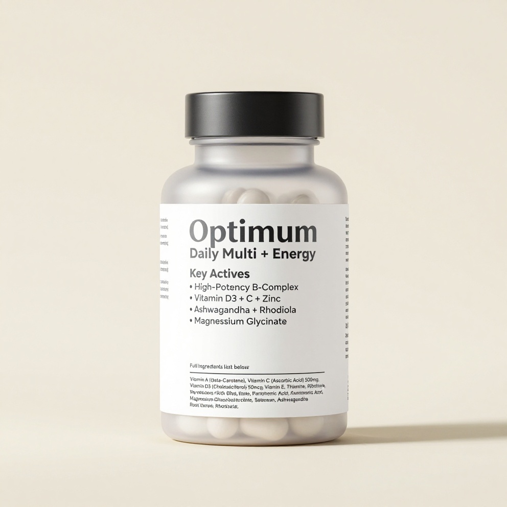 Optimum Daily Multi + Energy is a comprehensive once-daily multivitamin enhanced with energizing B-vitamins, adaptogens, and key minerals to support overall vitality, immune function, and sustained energy without crashes. Perfect for busy lifestyles, it fills nutritional gaps and promotes peak daily performance.